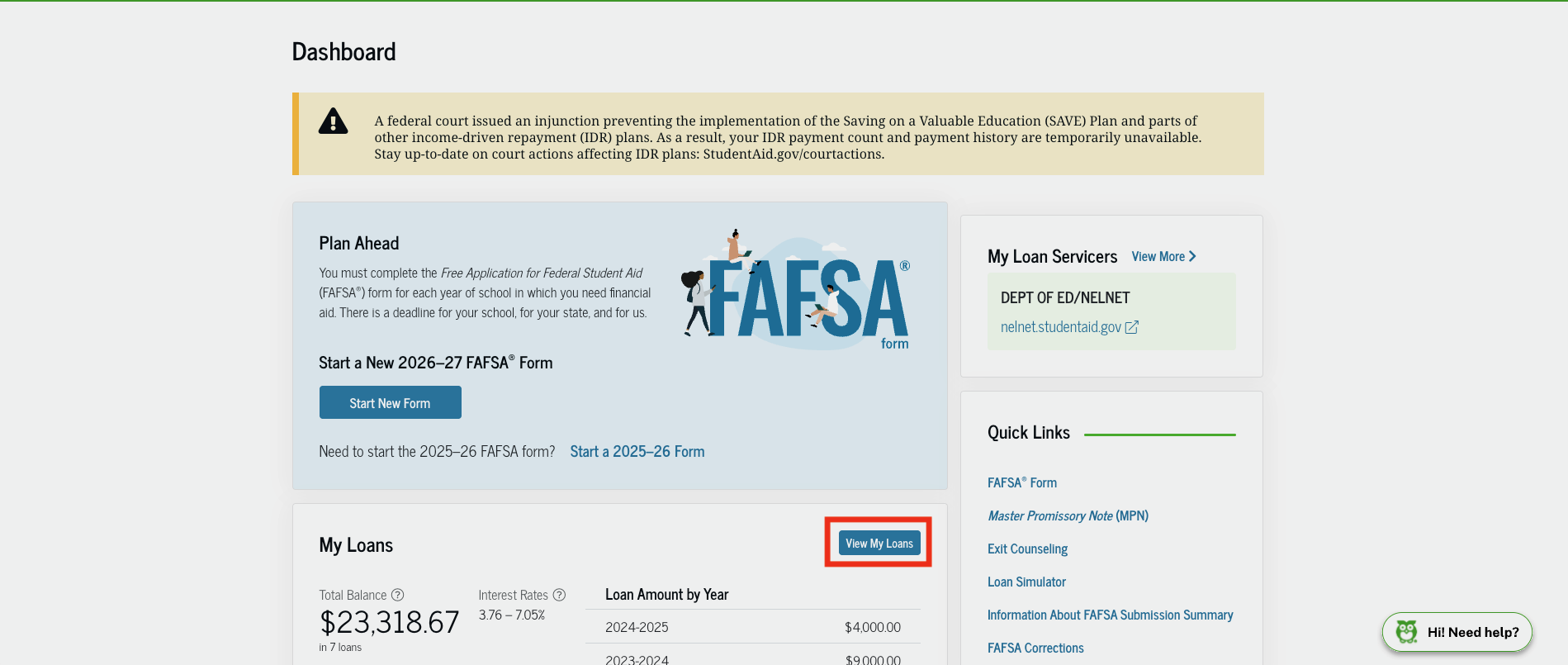 2.    From your dashboard, scroll down and click the "View My Loans" button